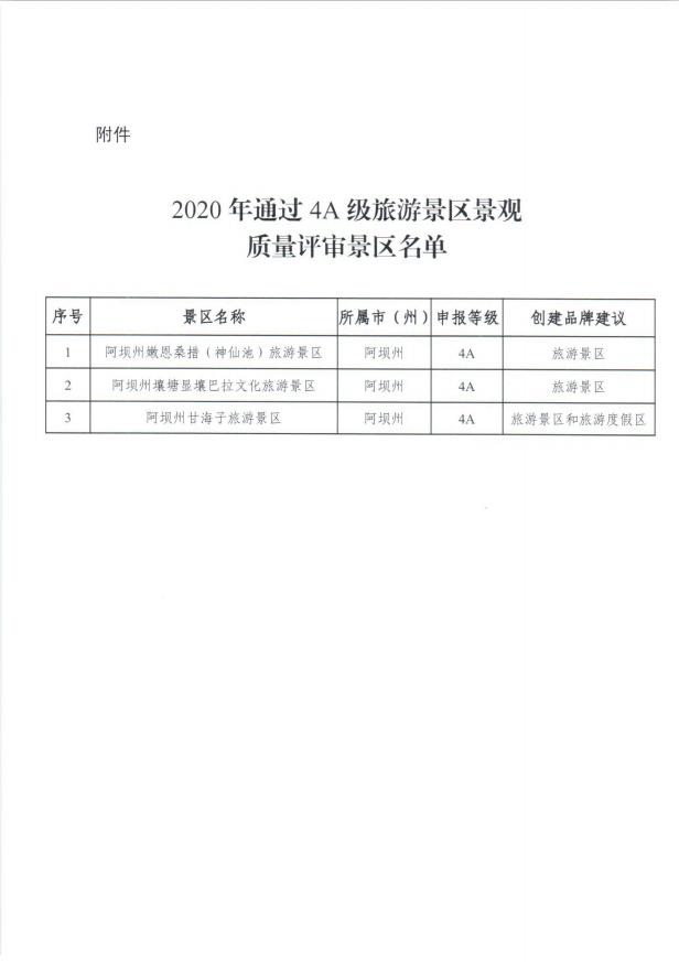 其中九寨溝愛情海(甘海子)等景區(qū)達(dá)到了申報(bào)創(chuàng)建4A級(jí)旅游景區(qū)的要求,省旅資委同意納入2020年度四川省4A級(jí)旅游景區(qū)創(chuàng)建計(jì)劃。標(biāo)志著九寨溝愛情海(甘海子)景區(qū)創(chuàng)4A工作進(jìn)入新起點(diǎn),為期半年的提升創(chuàng)建全面啟動(dòng)。