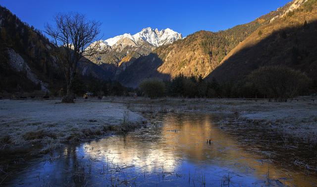 甘海子學(xué)名芳草海,位于松潘縣和九寨溝縣交界處的弓杠嶺,在九寨溝回成都的路旁能夠看到。這里原是一處高山湖泊,后因地質(zhì)變化,出水口擴(kuò)大,所以當(dāng)?shù)匕傩账追Q“干海子”。其實(shí),“干海子”并不干,這里四周遠(yuǎn)山層疊,森林茂密,海子中溪水蜿蜒,芳草萋萋,如天鵝絨地毯鋪滿大地,夏秋季野花點(diǎn)綴其間,牛羊騾馬成群,冬春時(shí)則一片深黃,與周圍的雪山紅葉相映成趣。因此,人們逐漸就把“干海子”叫成了“甘海子”。