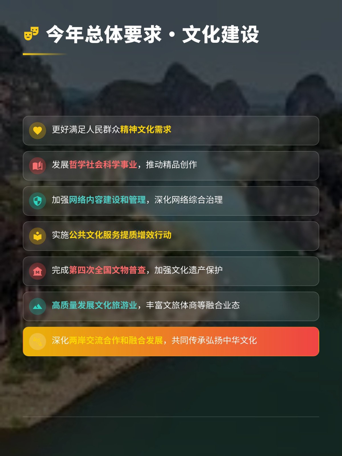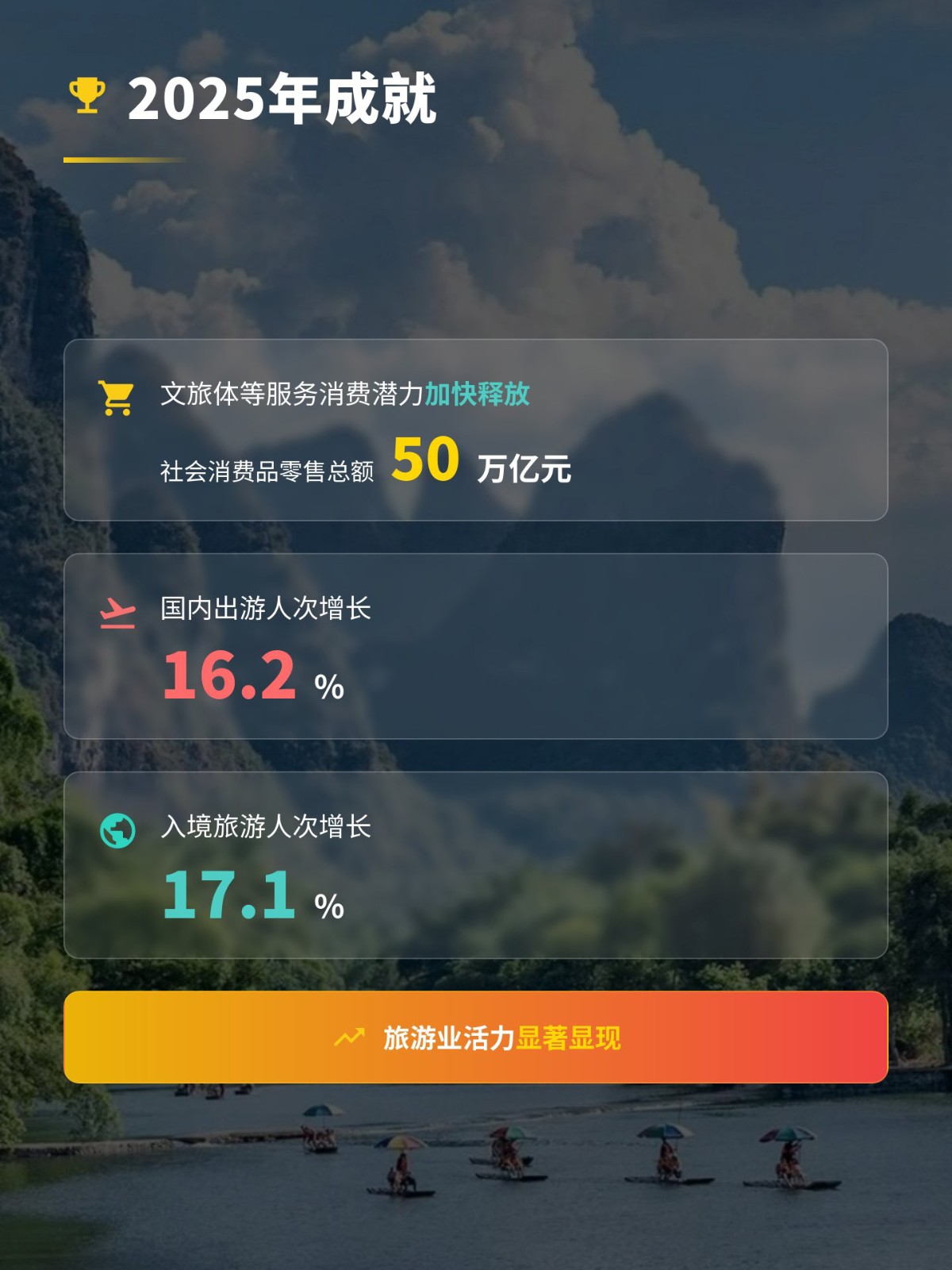 文旅:2024年新一批國家級(jí)旅游度假區(qū)名單正式出爐,四川花水灣旅游度假區(qū)上榜! 六部門聯(lián)合發(fā)布《推動(dòng)文化和旅游領(lǐng)域設(shè)備更新實(shí)施方案》,推動(dòng)文旅產(chǎn)業(yè)高質(zhì)量發(fā)展! 四川:《“十四五”文化和旅游科技創(chuàng)新規(guī)劃》正式發(fā)布,以科技創(chuàng)新賦能四川文旅發(fā)展! 農(nóng)文旅融合如何賦能鄉(xiāng)村振興?《鄉(xiāng)村振興促進(jìn)法》這樣說 圖解:四川省人民政府辦公廳關(guān)于印發(fā)四川省“十大”文化旅游品牌建設(shè)方案(2021—2025年)的通知