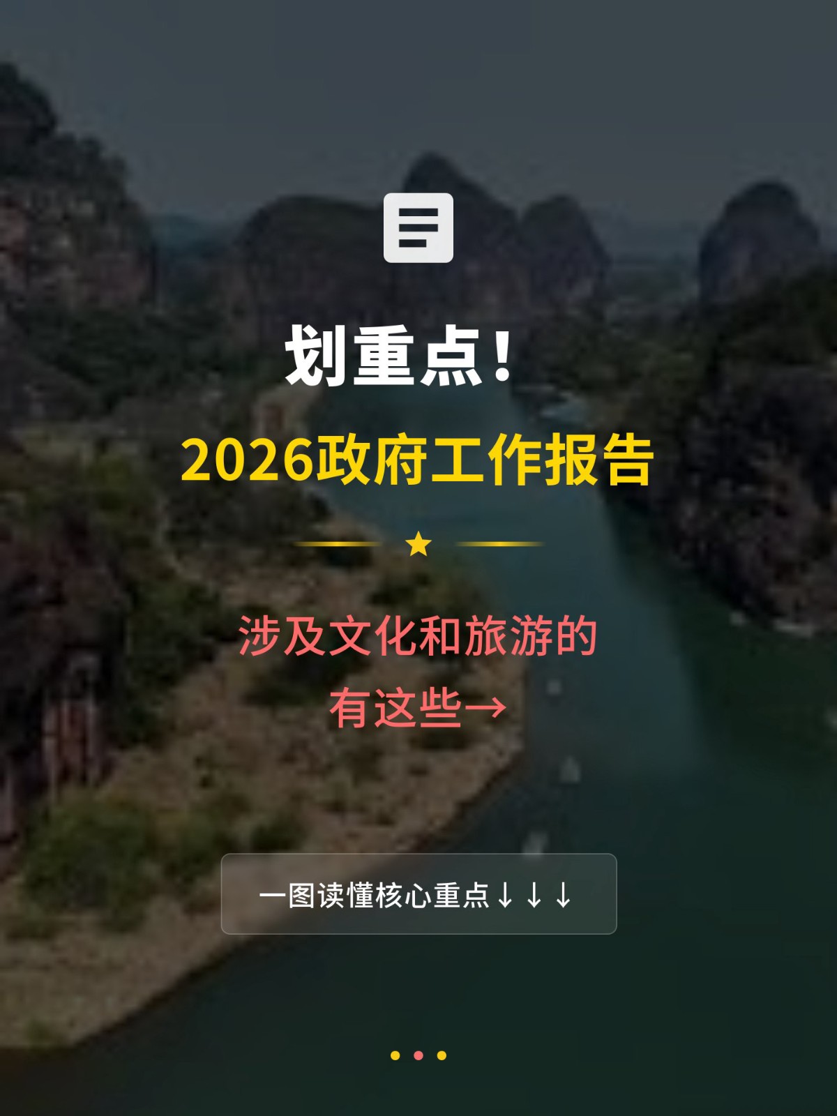 3月5日,十四屆全國人大四次會(huì)議在北京開幕,大會(huì)聽取并審議政府工作報(bào)告。報(bào)告里的文化和旅游“硬核”有哪些?一起來劃重點(diǎn)↓↓↓