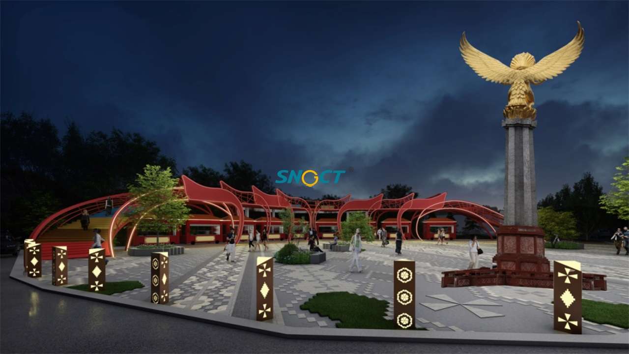 設(shè)計(jì)思路:設(shè)計(jì)以馬爾康嘉絨驛站“嘉絨圣地、夢之凈土”為指導(dǎo)理念,通過對當(dāng)?shù)乇就廖幕M(jìn)行分析,提取出藍(lán)色、金翅、土地、紋飾幾個(gè)元素對應(yīng)的顏色,在不影響銷售區(qū)的采光和結(jié)構(gòu)完整性的基礎(chǔ)上,對觀景平臺(tái)進(jìn)行整體化設(shè)計(jì)。并結(jié)合馬爾康的好山好水好景特色,設(shè)置天空之境打卡點(diǎn)。